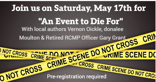 Join us for a night of murder and mayhem with donalee Moulton, author of Hung Out to Die, and Vernon Oickle, who will launch his ninth book in his Crow Series, Nine Crows for a Kiss. And to add some realism, retired RCMP officer Gary Grant, author of Walking Life’s Yellow Line My Way, will be joining us. There will even be a fun quiz about psychopaths. Bram Stoker’s Dracula is maybe one of the most well-known psychopaths, so we will be serving NovelTea’s Vlad’s First Bite: Berry Bliss Herbal Tea at 5:45 pm, with the event to follow. Advanced registration will be required by purchase of a $10 gift certificate to monitor our numbers
