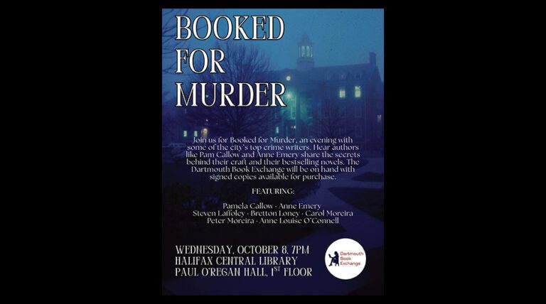 Join us for “Booked for Murder,” an evening with some of the city’s top crime writers. Hear authors like Pam Callow and Anne Emery share the secrets behind their craft and their bestselling novels. Sue Slade of Dartmouth Book Exchange will be on hand with signed copies available for purchase.