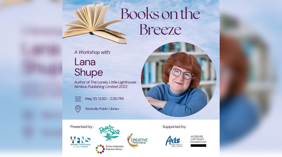 Books on the Breeze is presented by Read by the Sea in partnership with the Writers’ Federation of Nova Scotia and the Pictou-Antigonish Regional Library, and supported by Arts Nova Scotia and the Access Copyright Foundation.