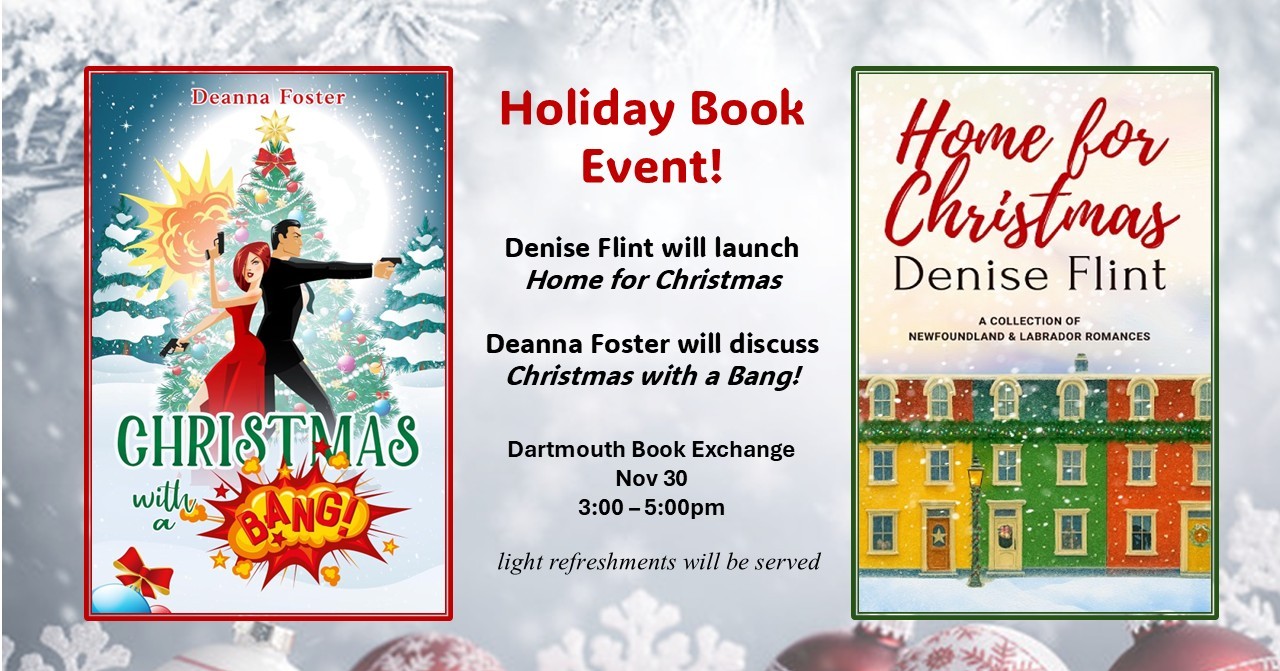 Denise Flint will be launching her new novel, Home for Christmas. A collection of four holiday romances set in Newfoundland and Labrador.