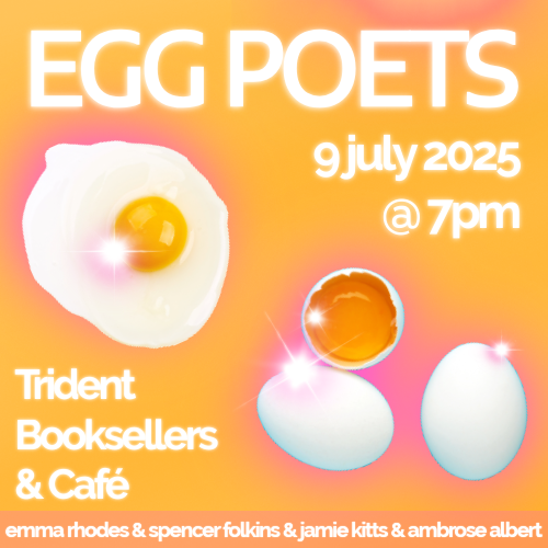 The Egg Poets Collective — Ambrose Albert, Spencer Folkins, Jamie Kitts, and Emma Rhodes — will be coming down from their writing retreat at Jampolis Cottage for an evening of reading, discussion, and books!