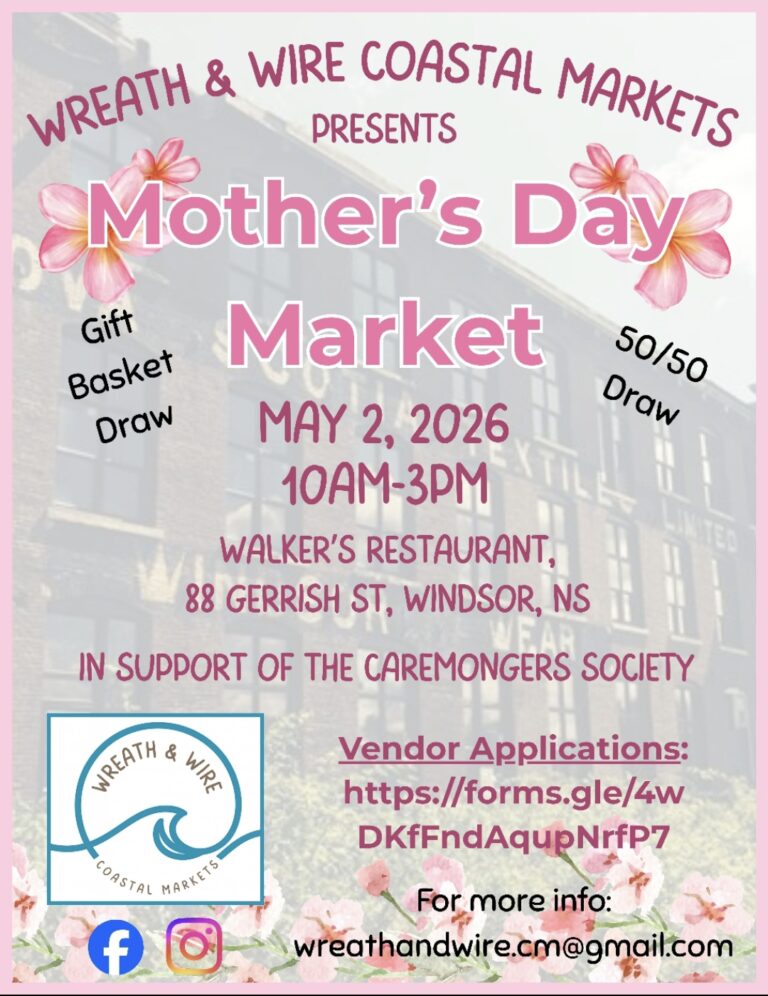 Wreath & Wire Coastal Markets is hosting this Mother’s Day Market in support of the Caremongers Society. Christine Hartlin will be there with three children’s books.