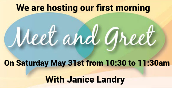 Please join us for our first-ever morning author Meet and Greet with Janice Landry. Come sit and chat with us at this informal get-together.