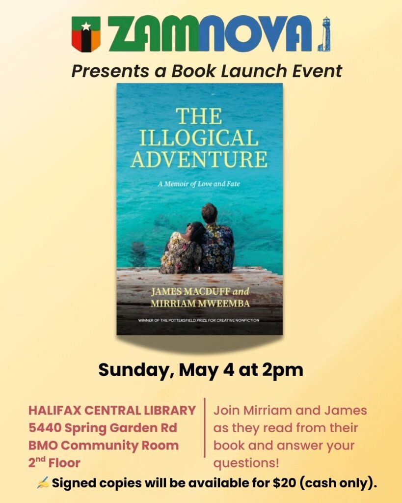 Book Launch for The Illogical Adventure: A Memoir of Love and Fate at the Halifax Central Library (2nd floor, BMO Community Room)!