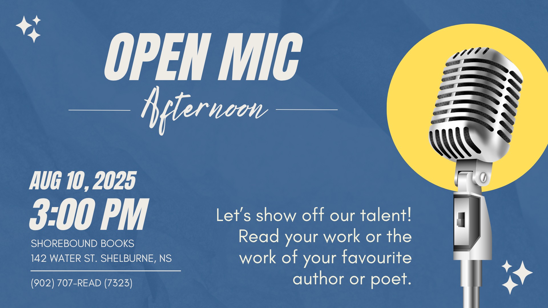 Join us for a very special Open Mic Afternoon! Are you a writer? Are you a literary enthusiast? Come read for us and find an audience for your work or show your appreciation for your favourite author or poet. Please send us a message if you’d like to participate.