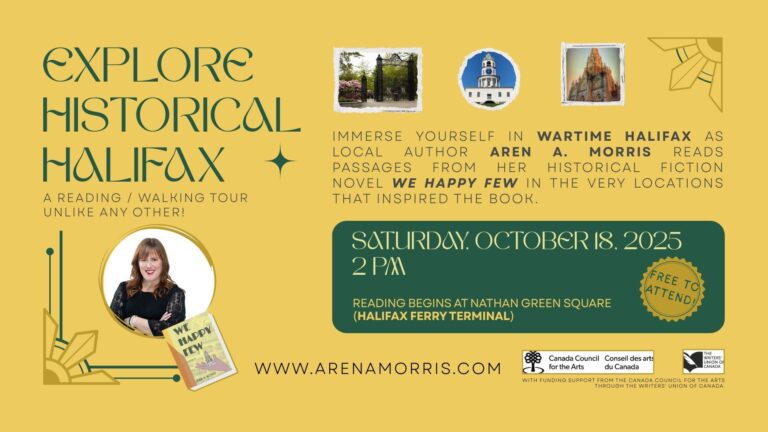 Immerse yourself in wartime Halifax as local author Aren A. Morris reads passages from her historical fiction novel We Happy Few in the very locations that inspired the book.