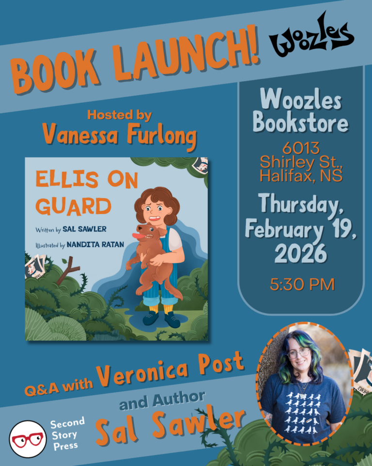 Come celebrate the launch of Sal Sawler’s second picture book, Ellis on Guard! Illustrated by Nandita Ratan and published by Second Story Press, Ellis on Guard will be launched at Woozles Children’s Bookstore on Thursday February 19 at 5:30. All are welcome!