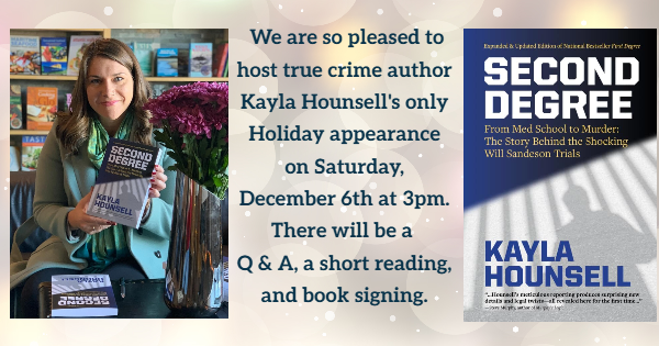 Join us with true crime author Kayla Hounsell and her book Second Degree: From Med School to Murder, The Story Behind the Shocking Will Sandeson Trials. We will be discussing her book. There will be a Q&A, a short reading, and a book signing at the conclusion of the event. This is her first appearance in Cole Harbour and her only event during this holiday season.