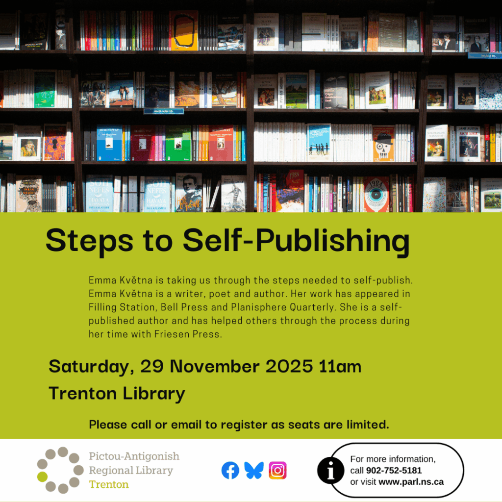 Please call 902-752-5181 or email trenton@parl.ns.ca to register as seats are limited.