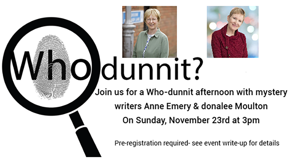 Join us for a wordy Who-dunnit? afternoon with Anne Emery & donalee Moulton.