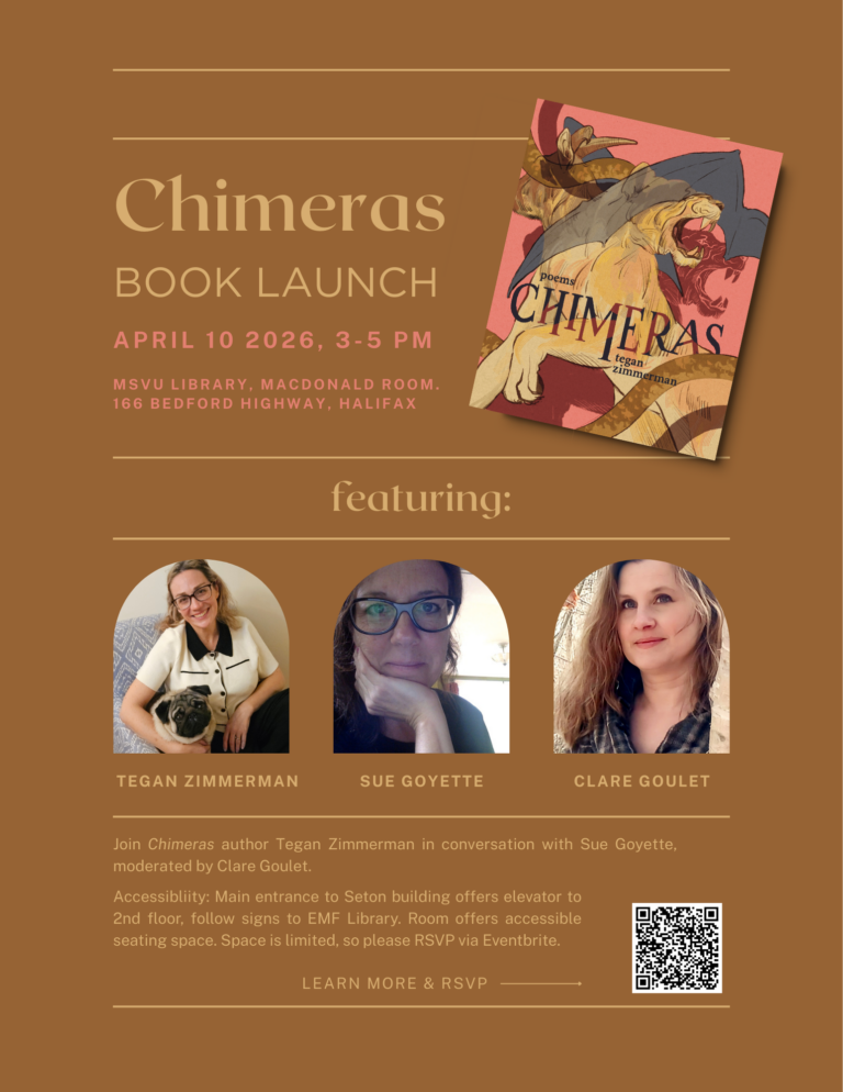 Join us April 10 at 3 pm in the Mount MacDonald Room to celebrate the launch of Tegan Zimmerman’s debut poetry book.