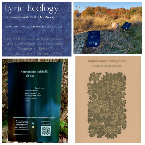 Outdoor installation: Collaborated with the E.C. Smith Herbarium (Alain Belliveau) to create a permanent lichen-poem trail on North Mountain at Ross Creek Centre of the Arts (Chris O’Neill) in Nova Scotia.