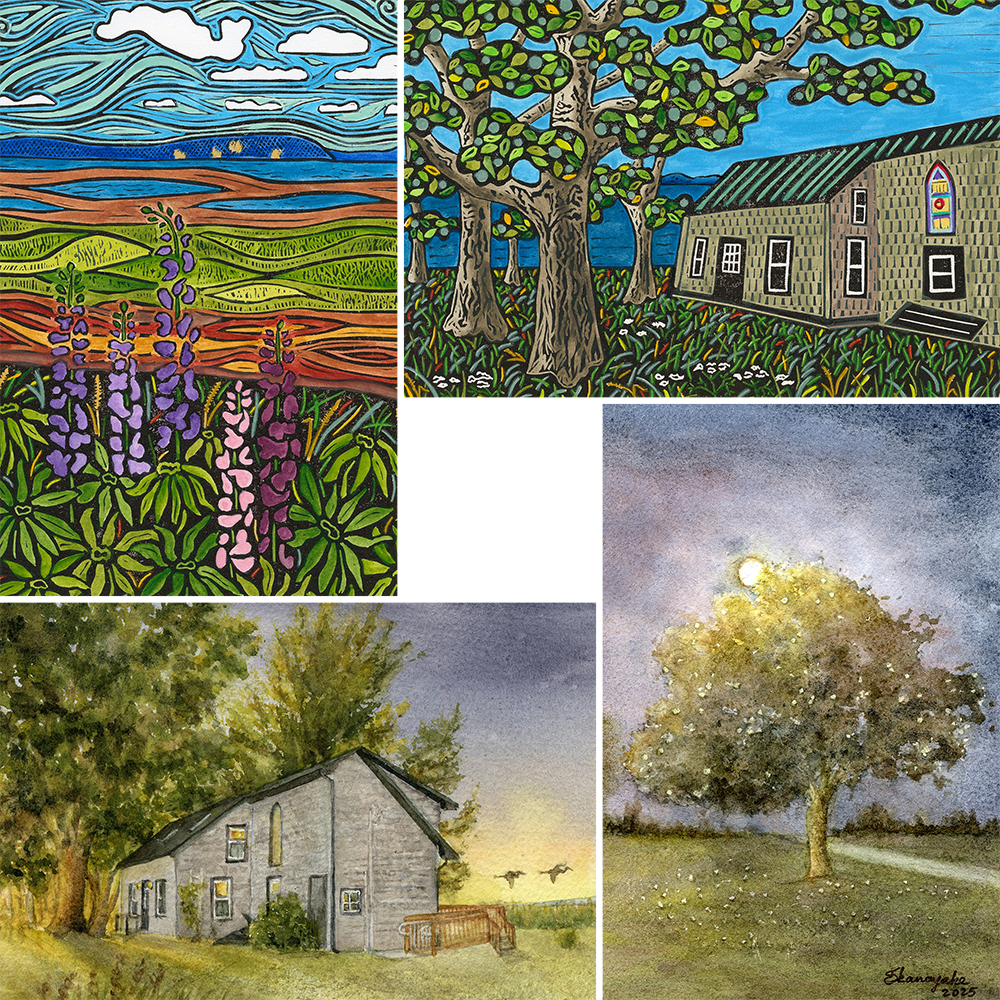 Featuring original artworks by Vanessa McKiel (pictured at top) and Sunetra Ekanayake (pictured at bottom), created for WFNS at Jampolis Cottage in September, 2025.