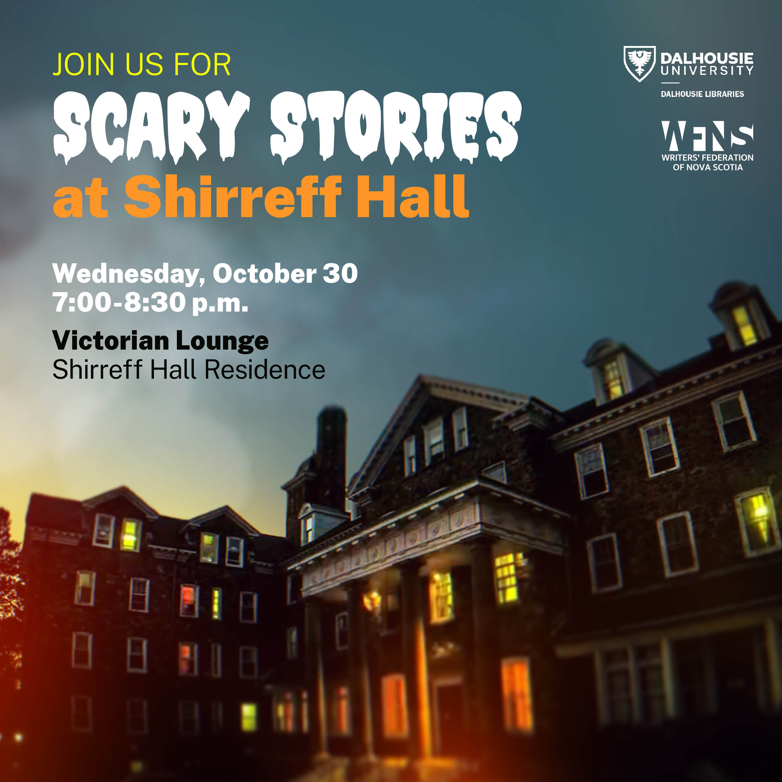 Scary Stories was an annual storytelling and reading series held in late October in the Victorian Lounge of Dalhousie University’s Shirreff Hall. Despite Shirreff Hall’s alleged haunting by the ghost of Penelope, series attendance regularly reached venue capacity. Each event was free to attend.