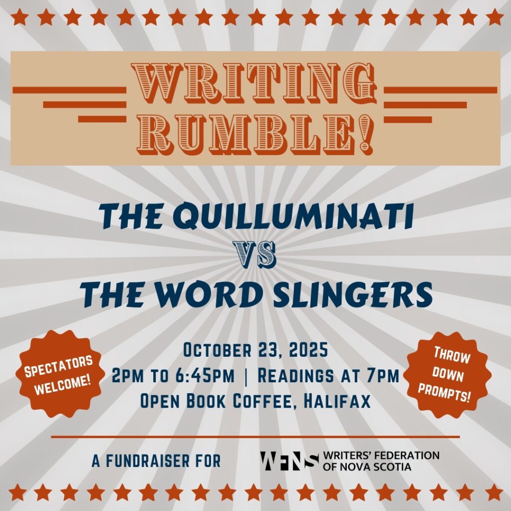 All sponsor donations for the Writing Rumble 2025 will support the Writers’ Federation of Nova Scotia’s Alistair MacLeod Mentorship Program.