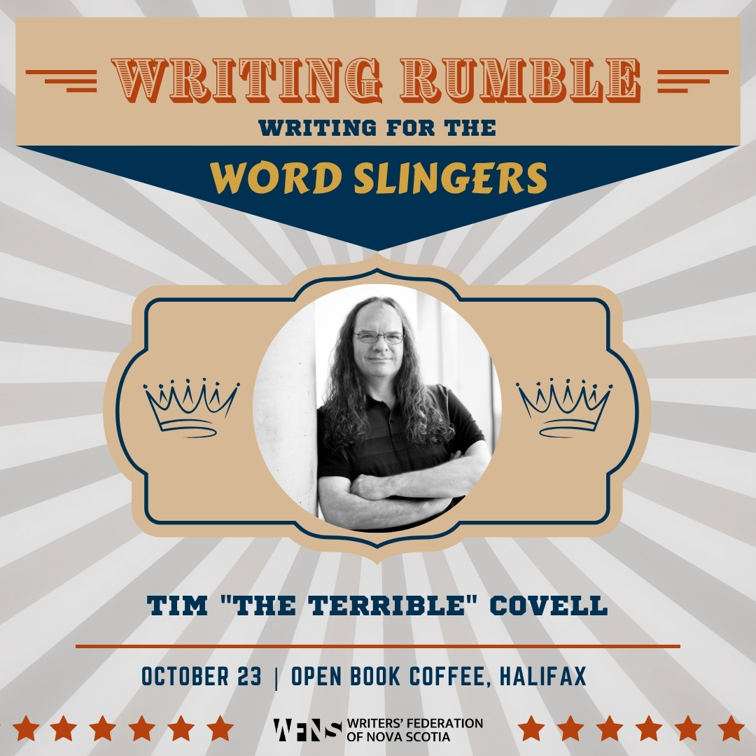 On the day of the Writing Rumble, our Rumblers will compose their stories in a public setting. All are welcome to drop in, mingle with fellow writers, watch the writing process via projector, and cheer or jeer the Rumblers.